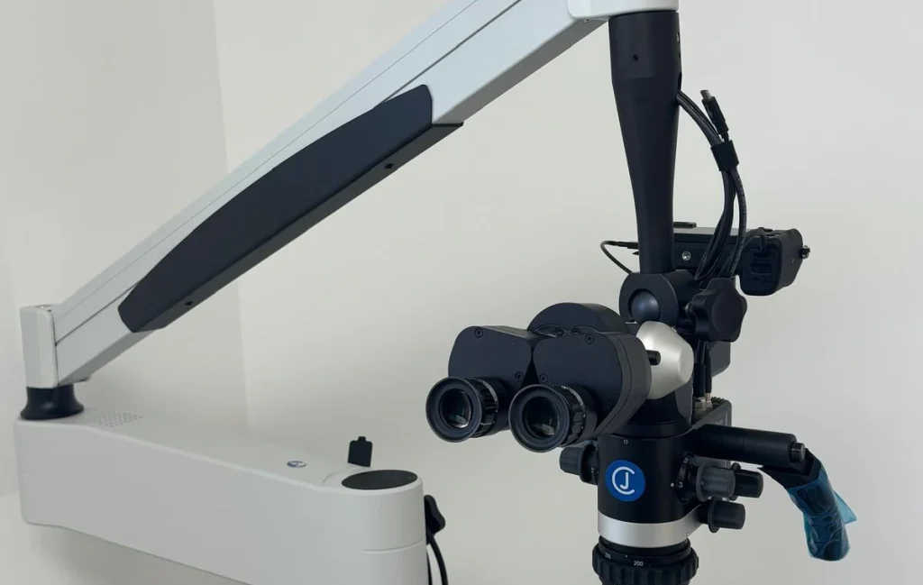 L’endodontie moderne s’appuie sur des outils qui permettent d’atteindre une grande précision. Le microscope dentaire est devenu un instrument incontournable pour le retraitement des racines. Grâce à un fort grossissement et un éclairage puissant, il offre une vision détaillée de l’intérieur de la dent.
